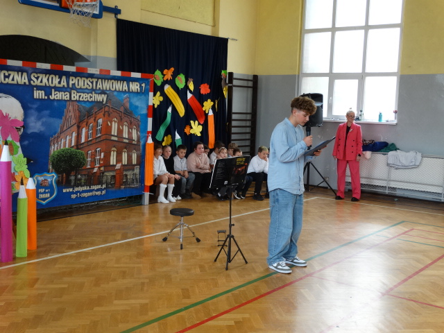 Uczniowie przygotowali piękny program artystyczny, w którym nie zabrakło podziękowań, piosenek i wierszy dla nauczycieli oraz pracowników szkoły.