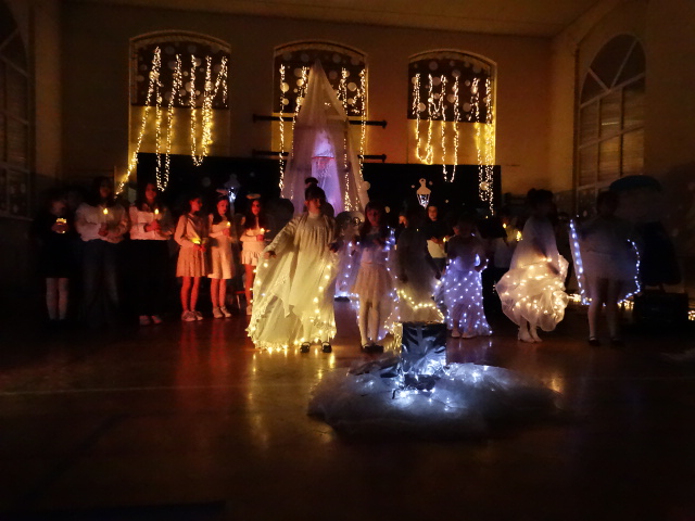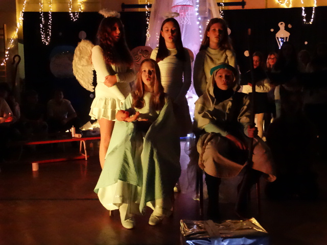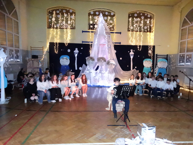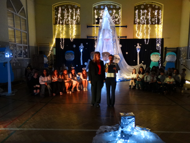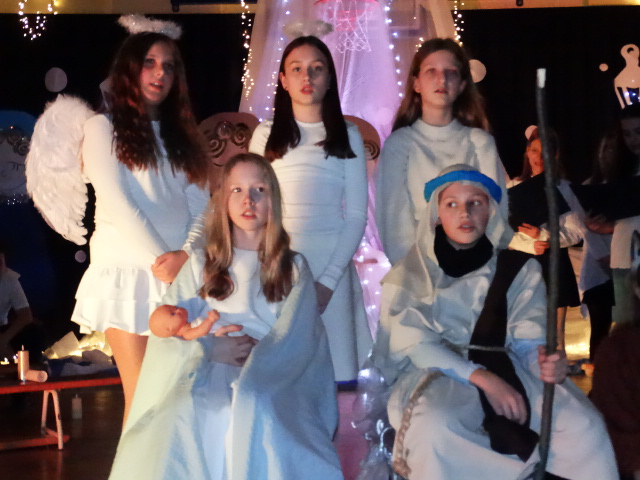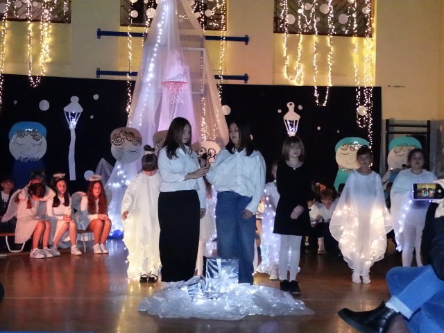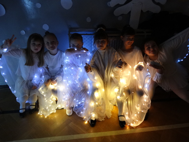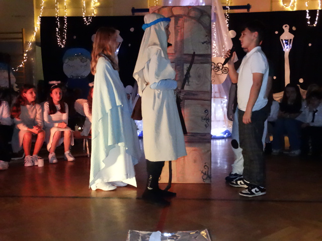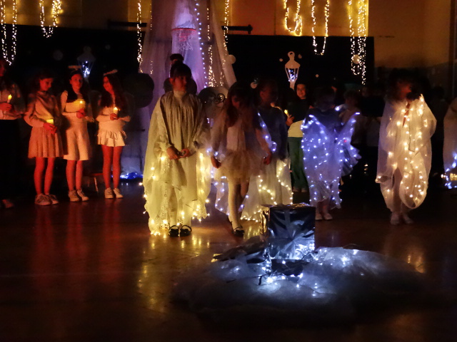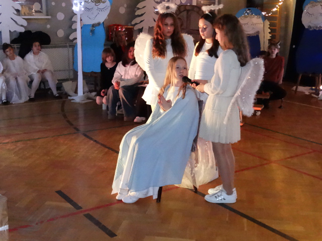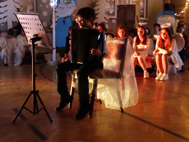 Uroczystość została wzbogacona występem uczennic z klas 2a i 2b, prezentujących taniec aniołków, a także grą na akordeonie w wykonaniu Julka Czarnego, który wykonał kolędę.