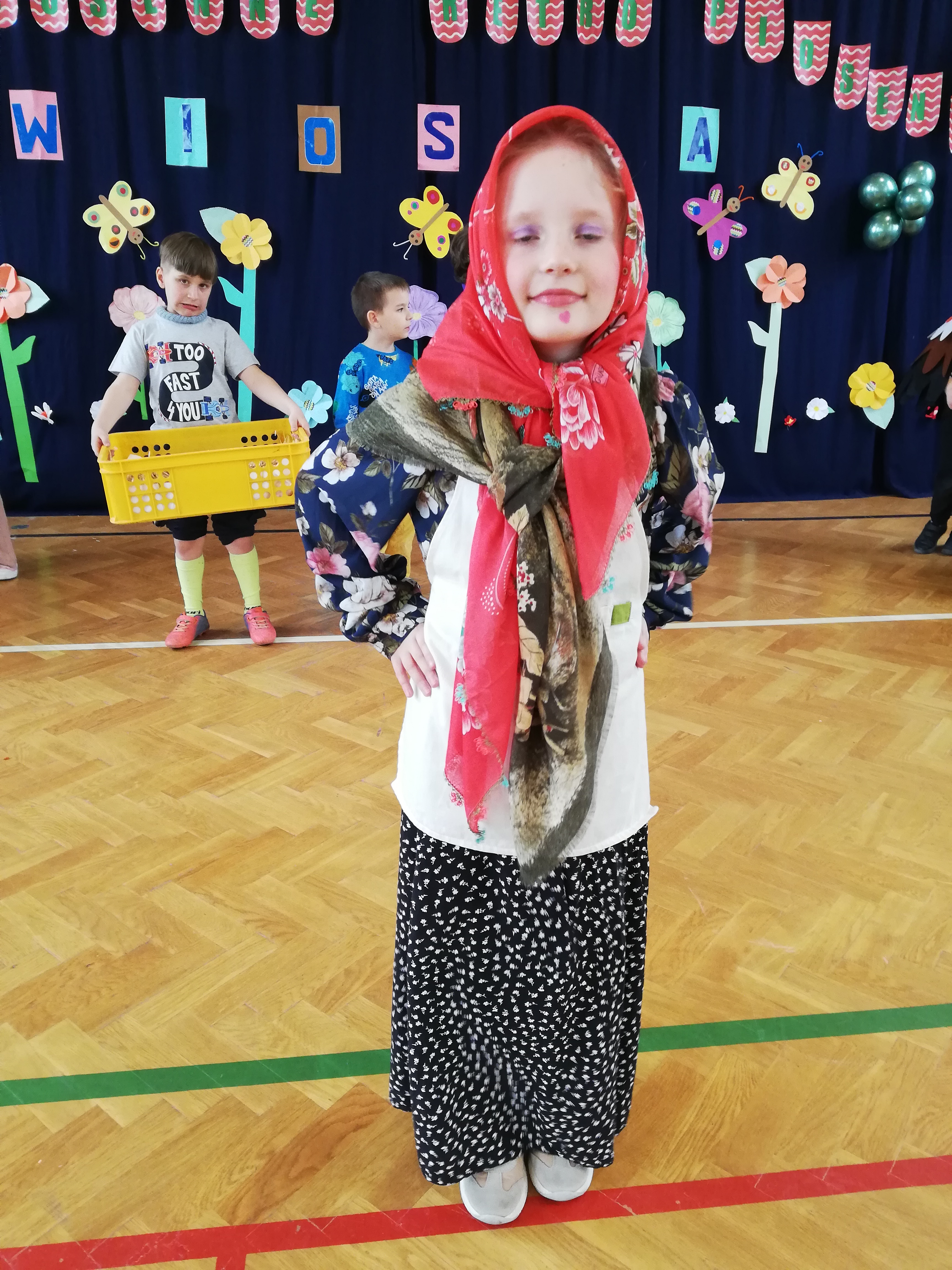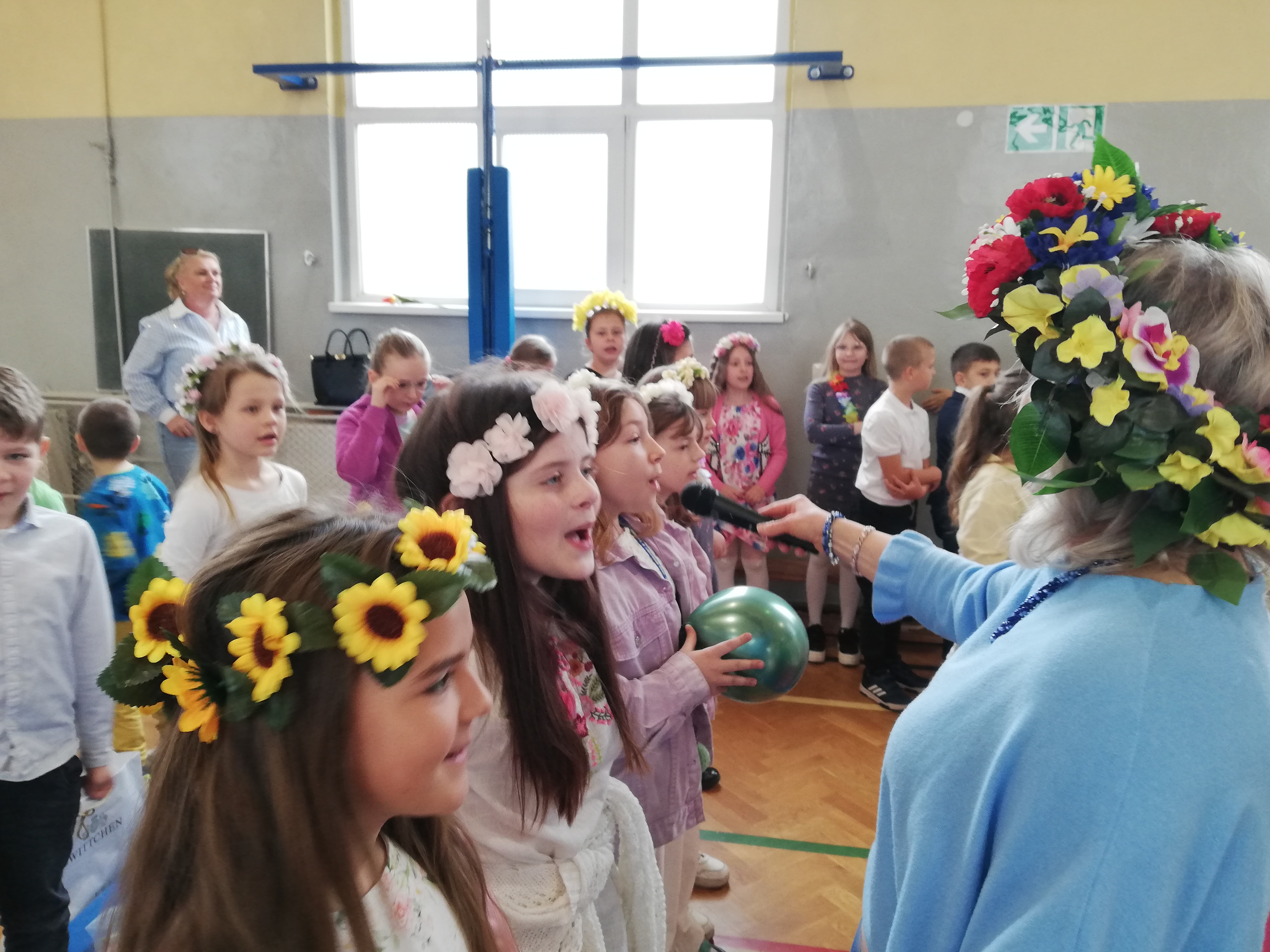 Uczniowie klas 1-3 przywitali wiosnę wspólnie śpiewając piosenki, przygotowując występy do piosenek z dawnych lat, odpowiadając na pytania dotyczące patrona naszej szkoły, a na koniec tworząc piękne wiosenne plakaty. Mieli okazję zobaczyć inscenizacje wiersza pt. Żuraw i czapla w wykonaniu nauczycieli (M. Wiadomskiej, K. Dziminski, J. Najdek).