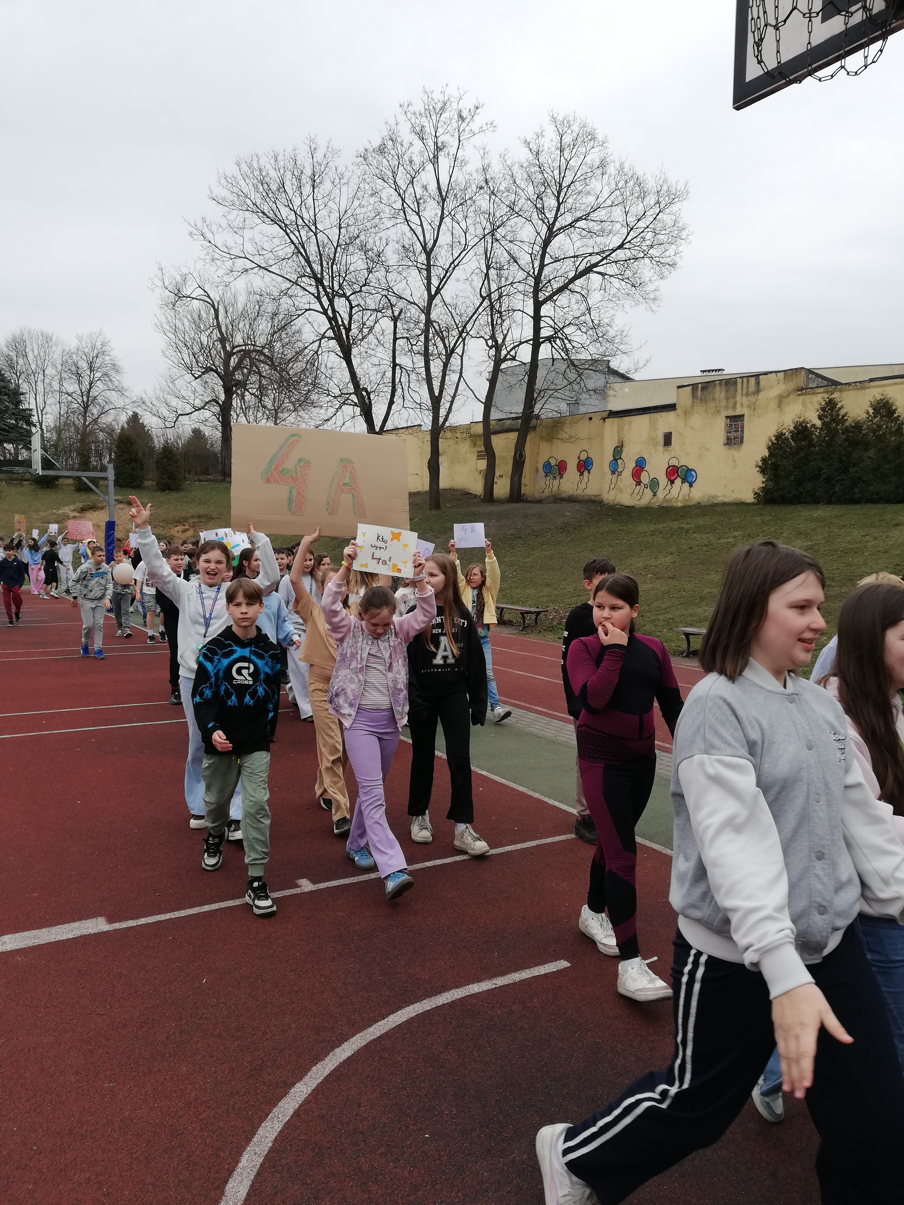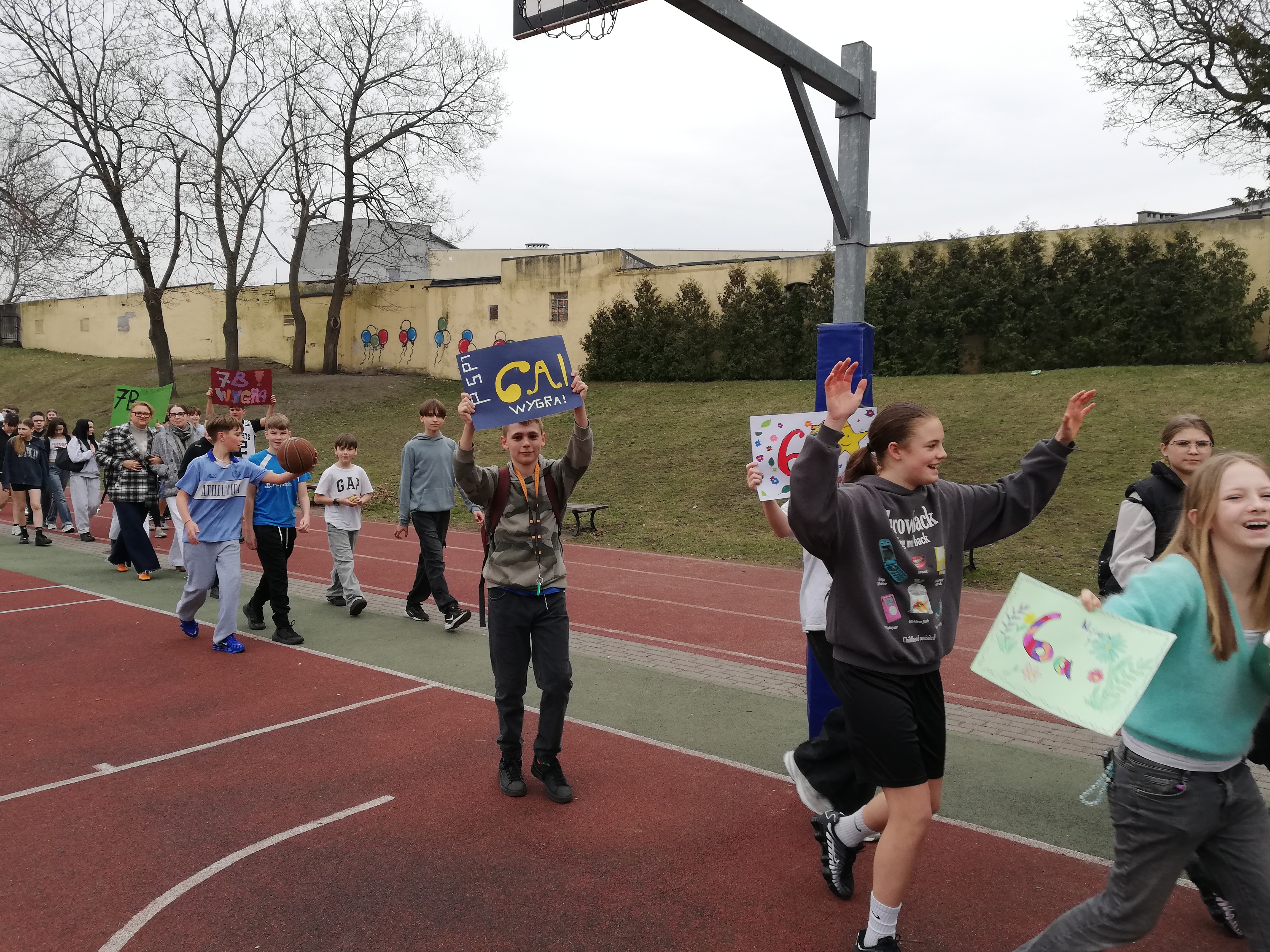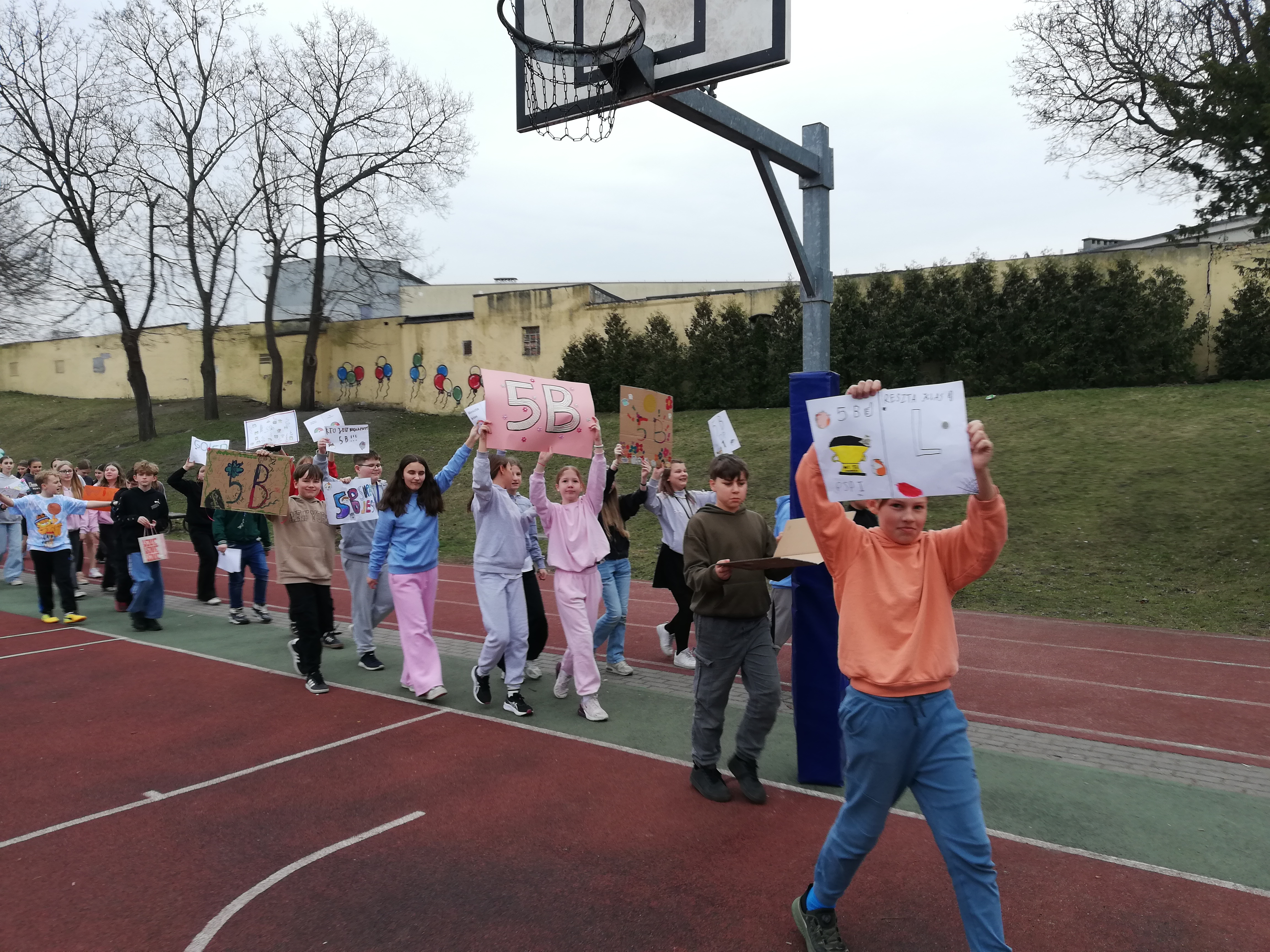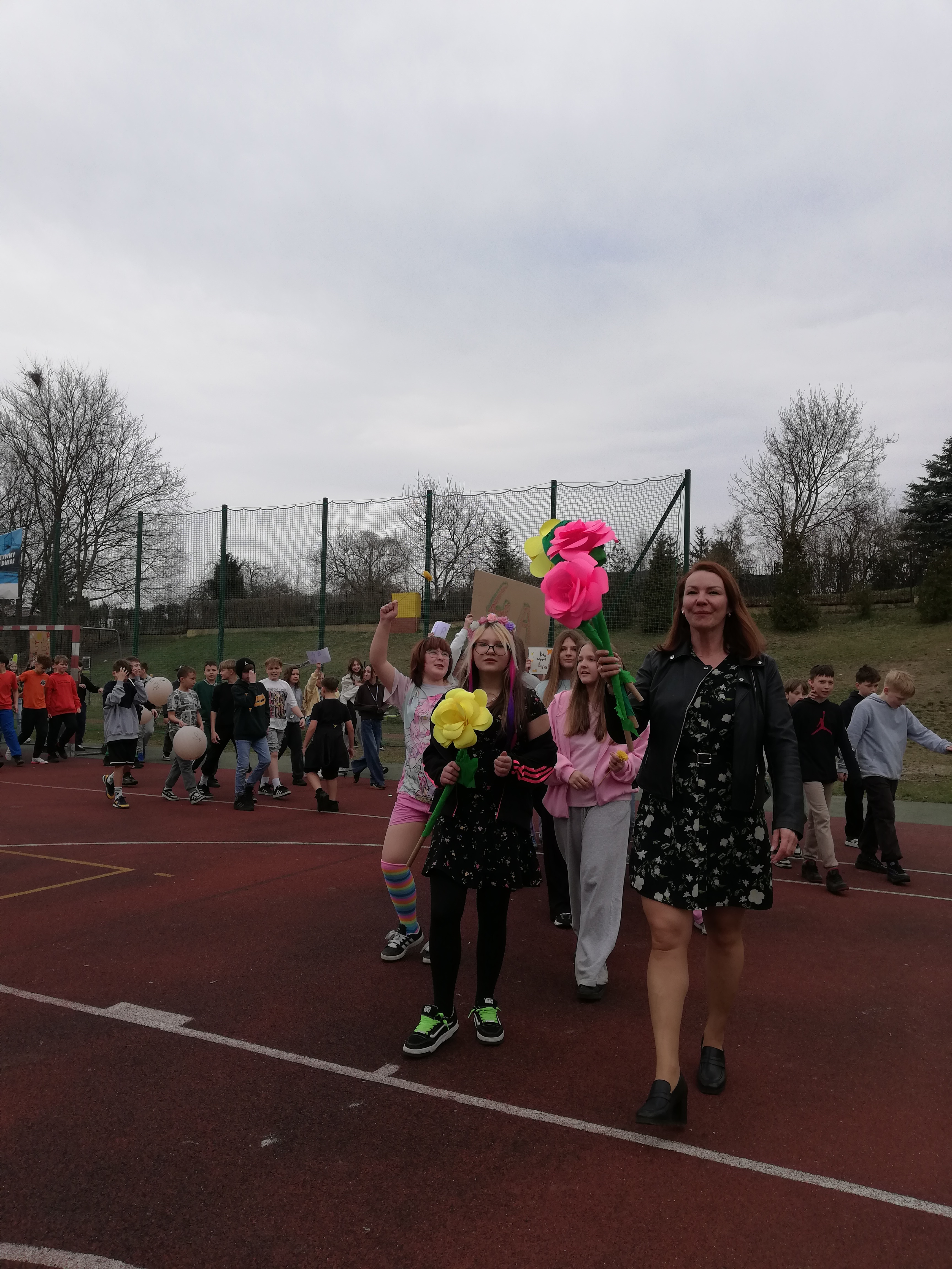 Uczniowie klas 4-8 przygotowały barwny i pełen energii korowód z Panią Wiosną, który wprowadził wszystkich w prawdziwie wiosenny nastrój. Kolorowe transparenty i kreatywność uczestników zrobiły ogromne wrażenie!