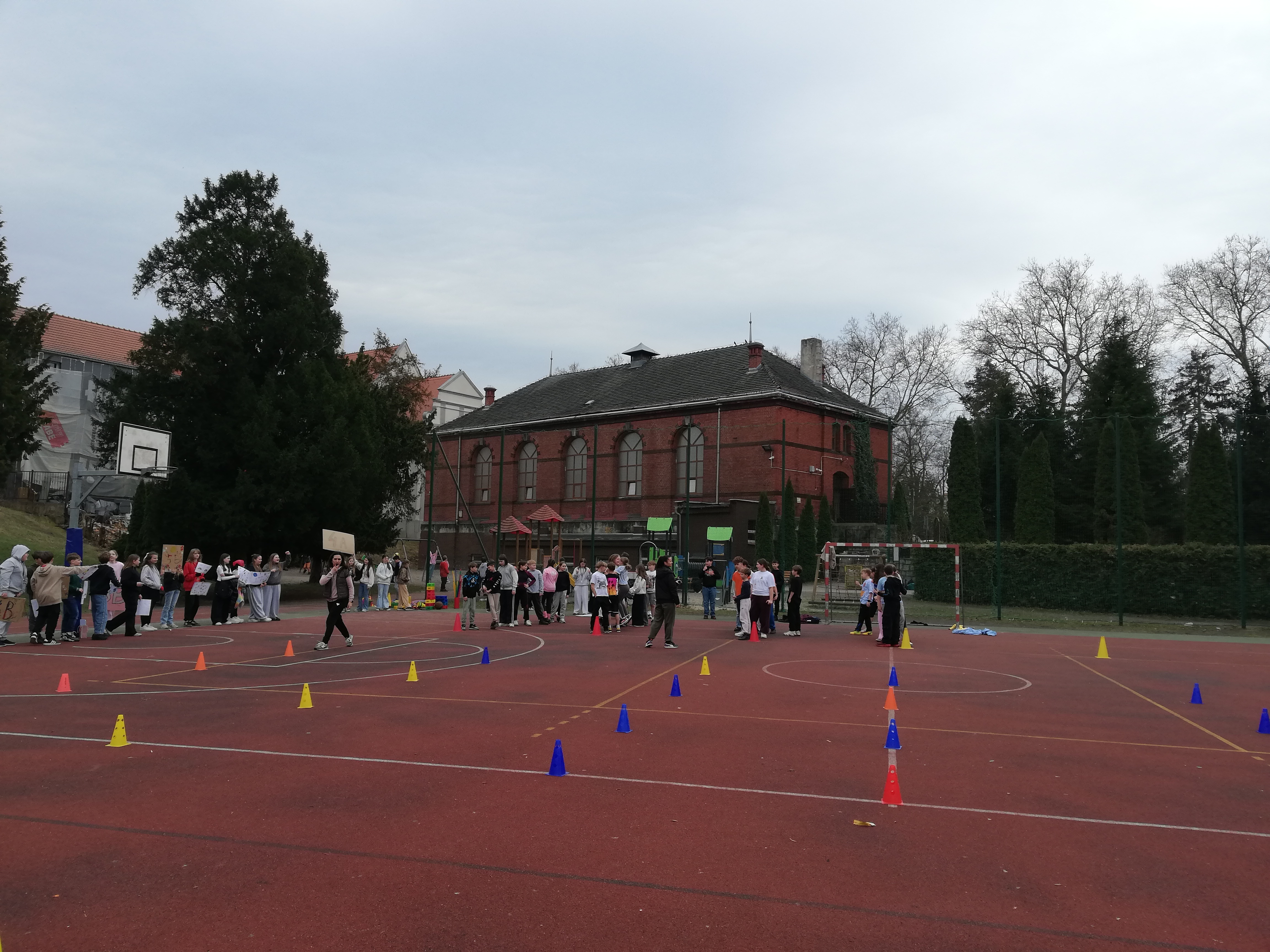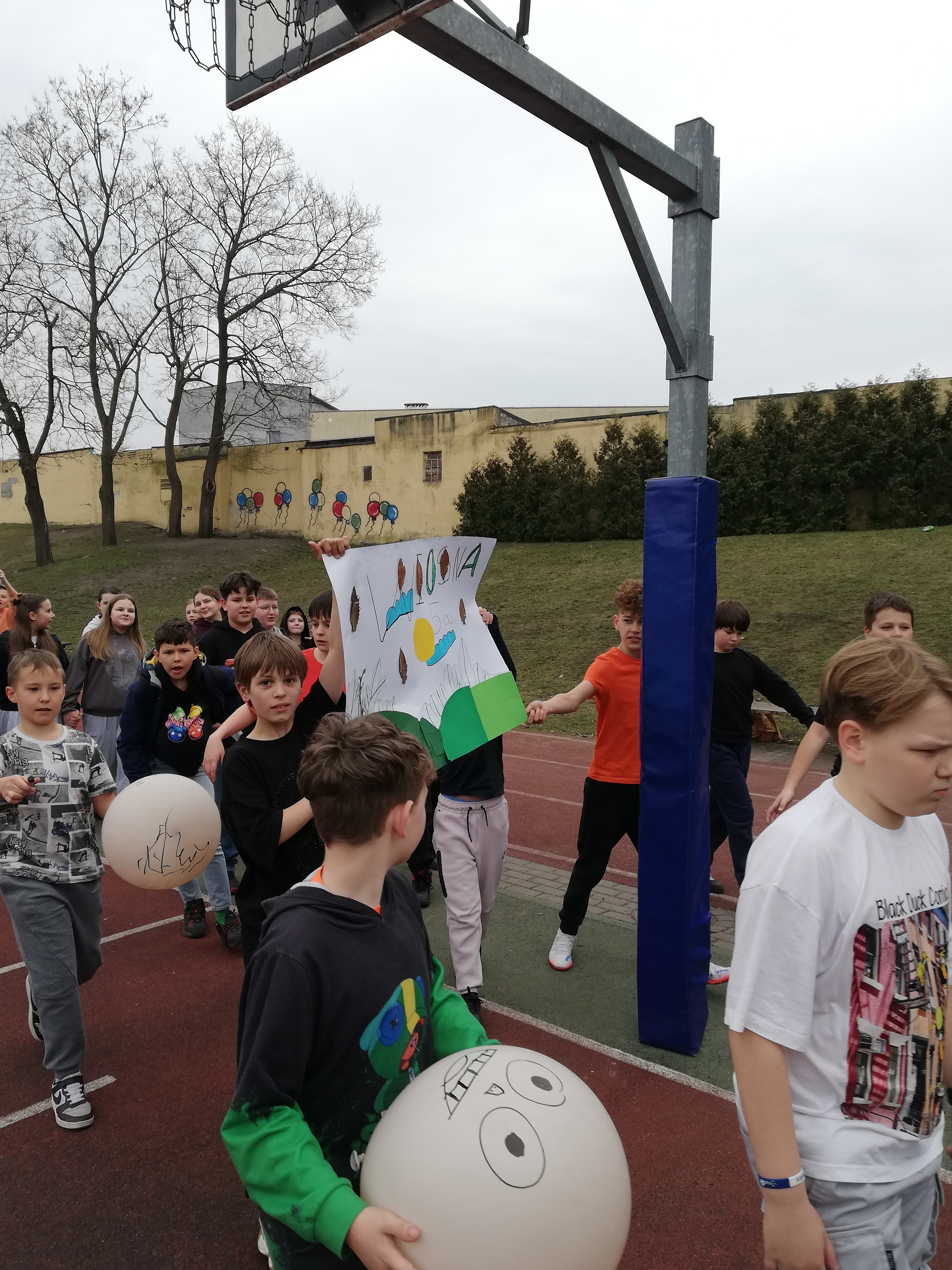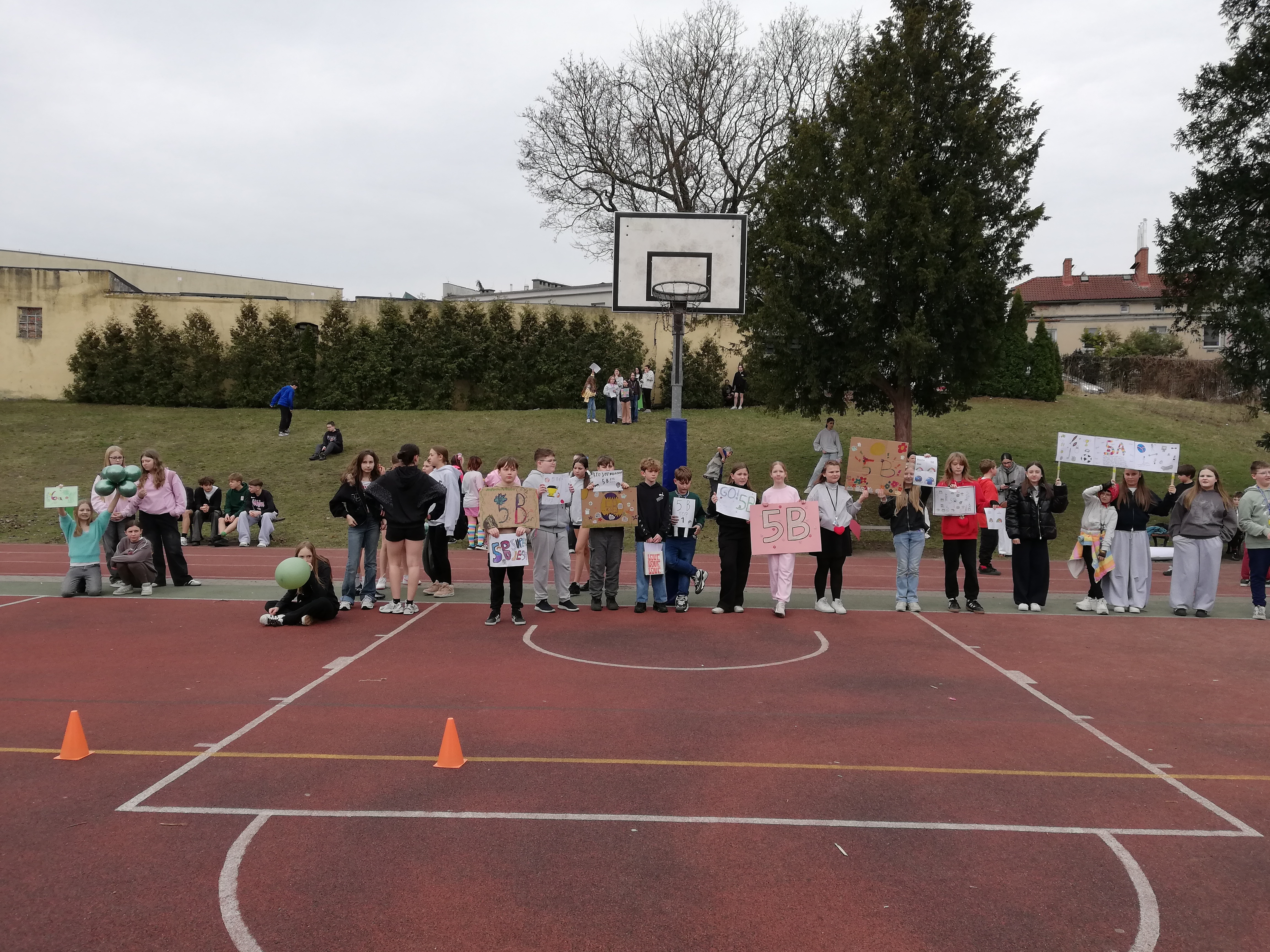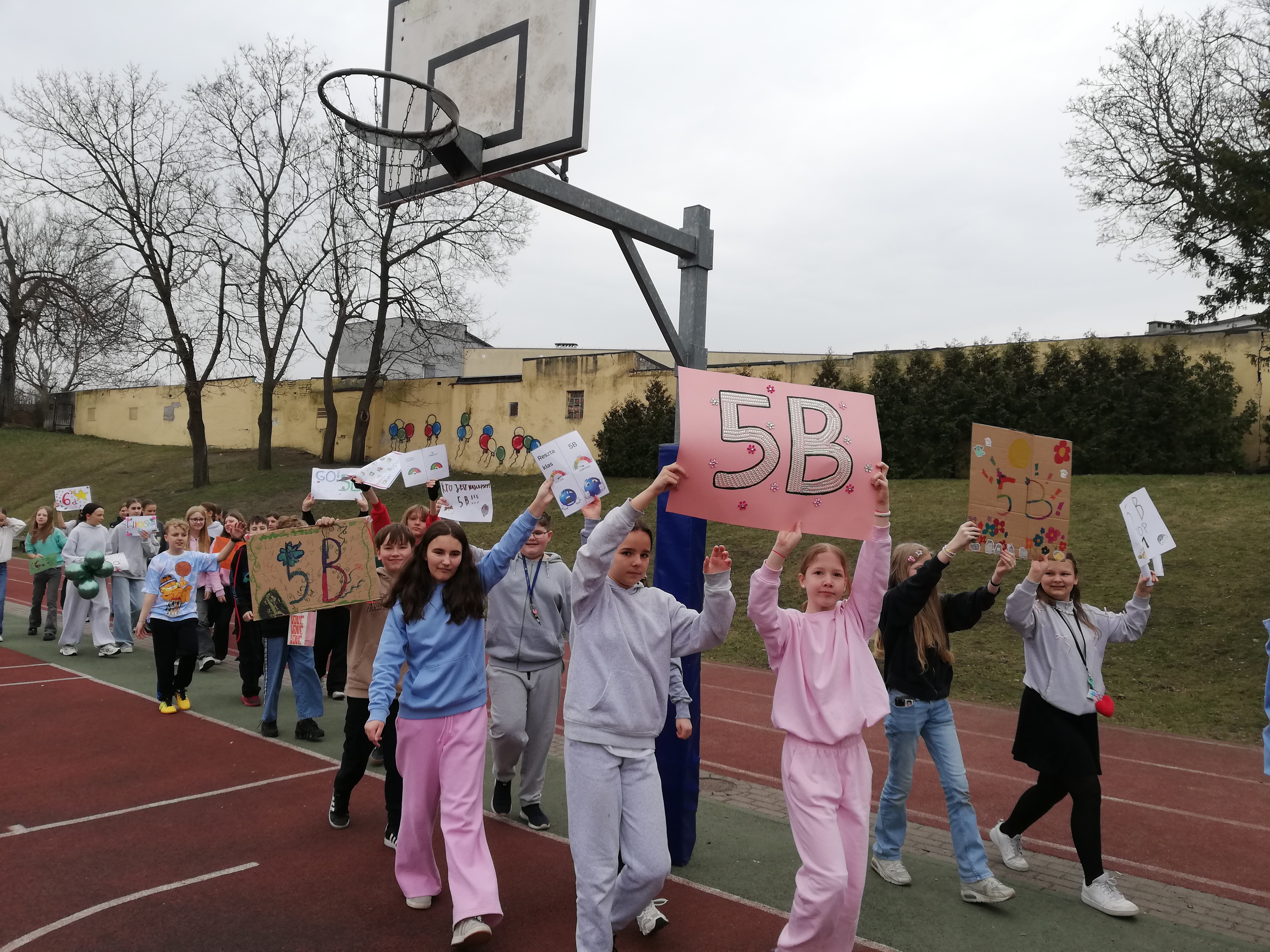 Uczniowie klas 4-8 przygotowały barwny i pełen energii korowód z Panią Wiosną, który wprowadził wszystkich w prawdziwie wiosenny nastrój. Kolorowe transparenty i kreatywność uczestników zrobiły ogromne wrażenie!