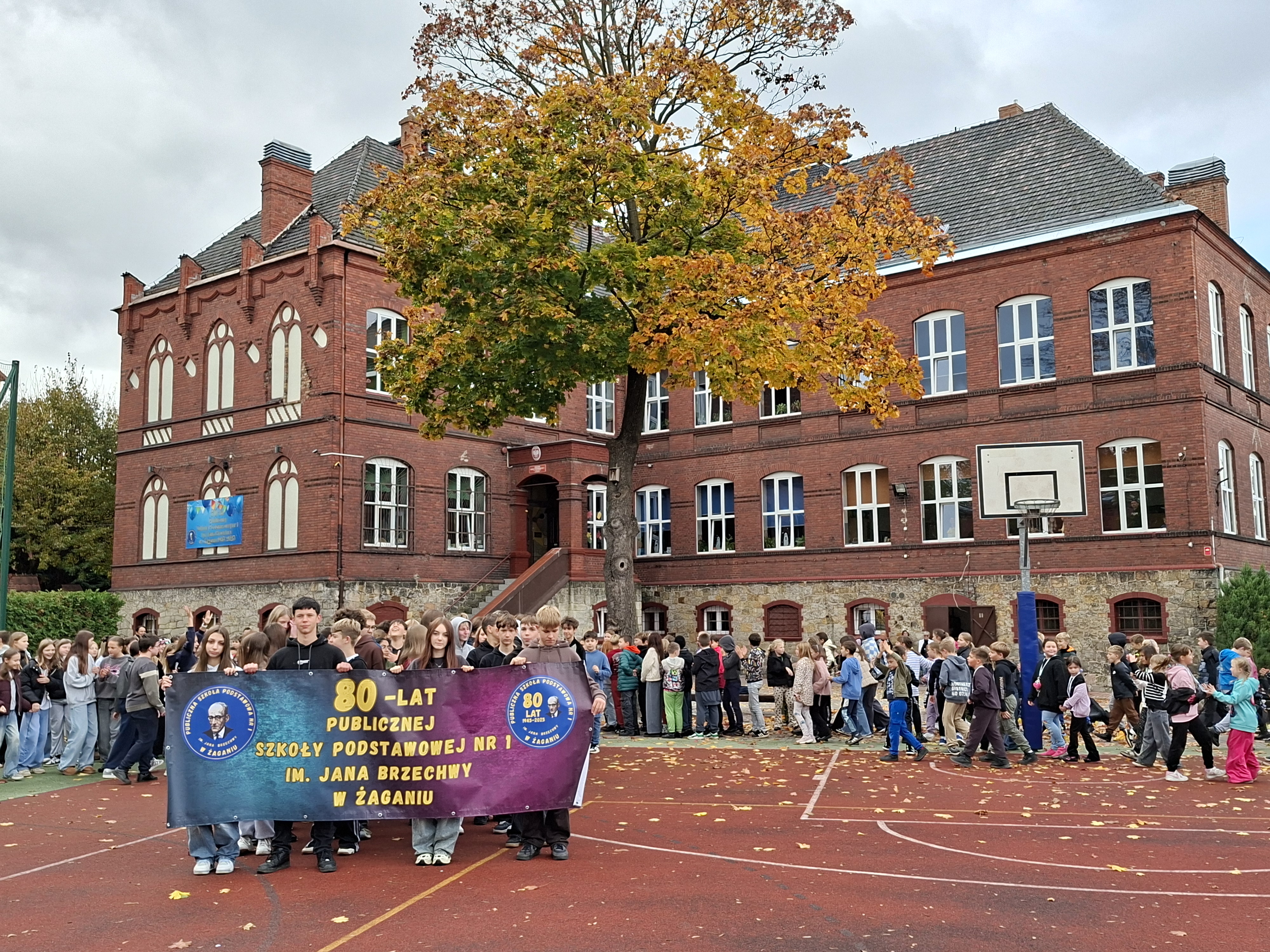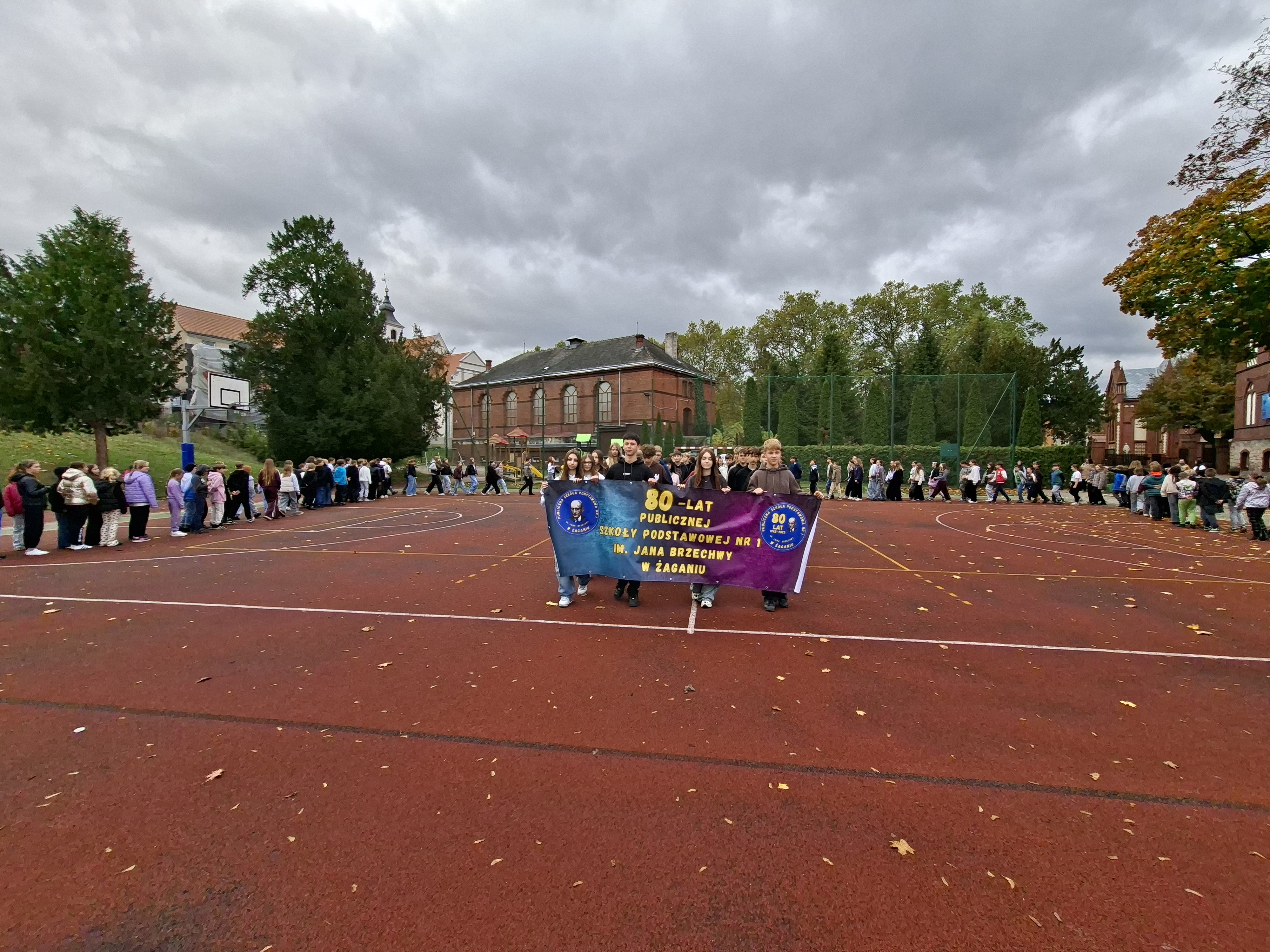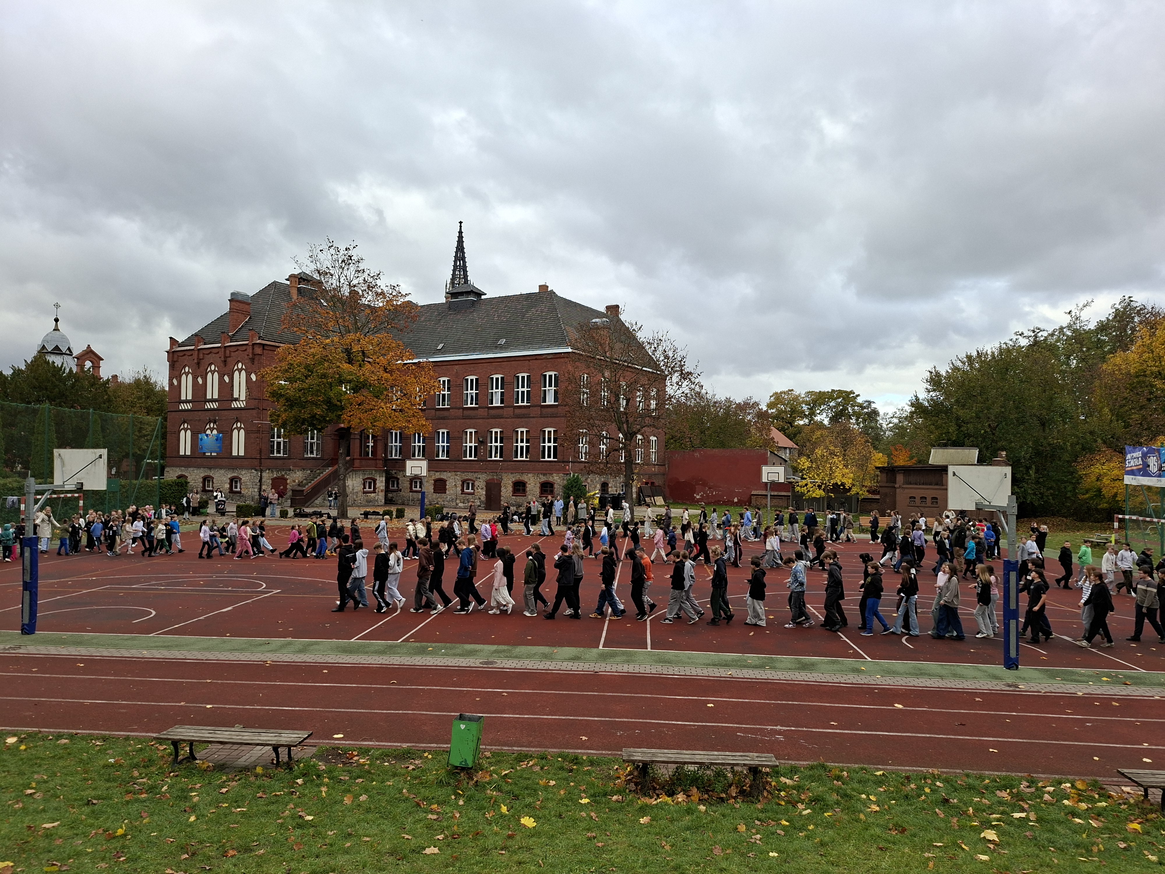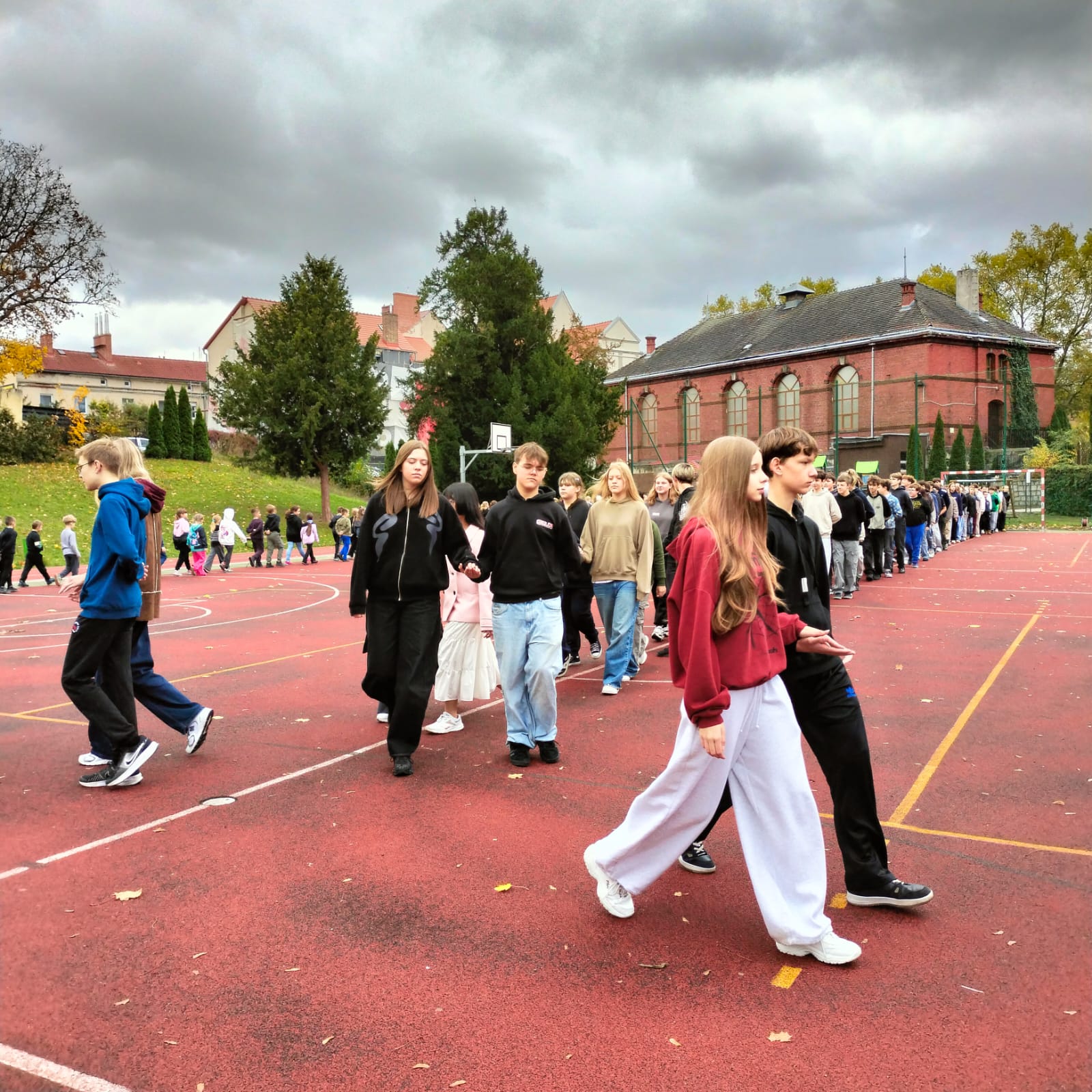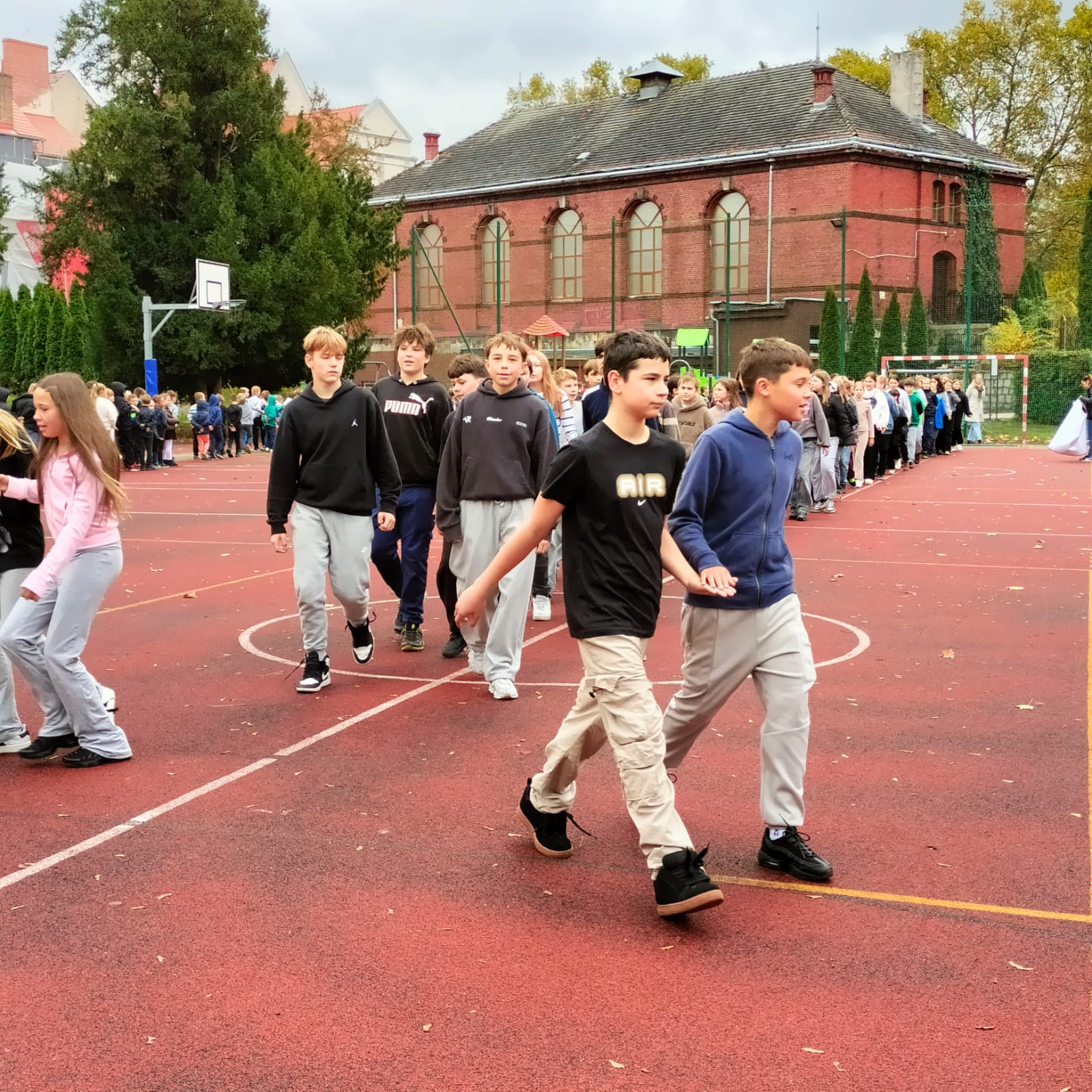 Z okazji naszego wyjątkowego jubileuszu cała społeczność szkolna wspólnie zatańczyła uroczystego Poloneza. Ten symboliczny taniec, pełen elegancji i tradycji, stał się pięknym wyrazem jedności oraz dumy z naszej szkoły i jej historii.