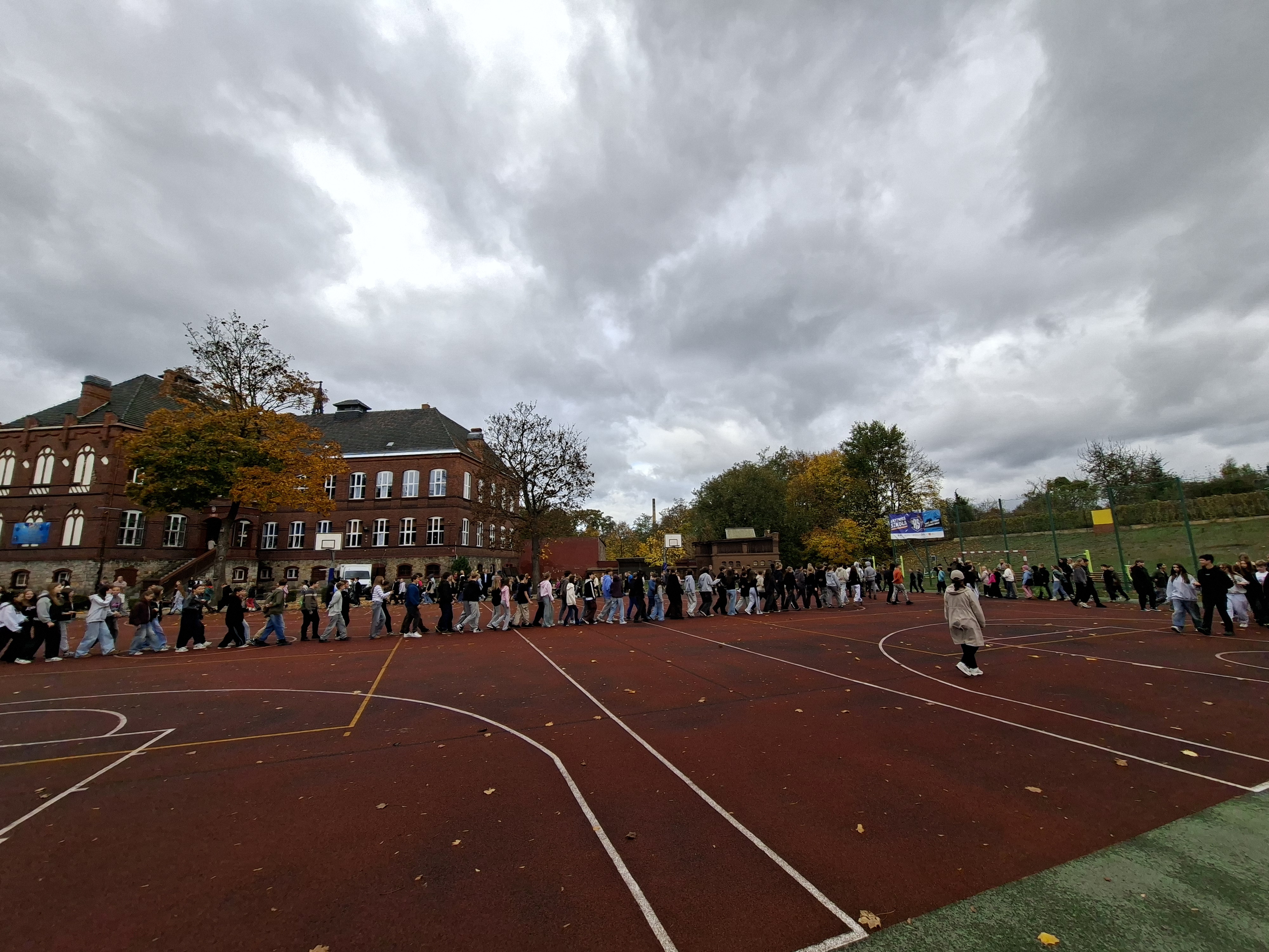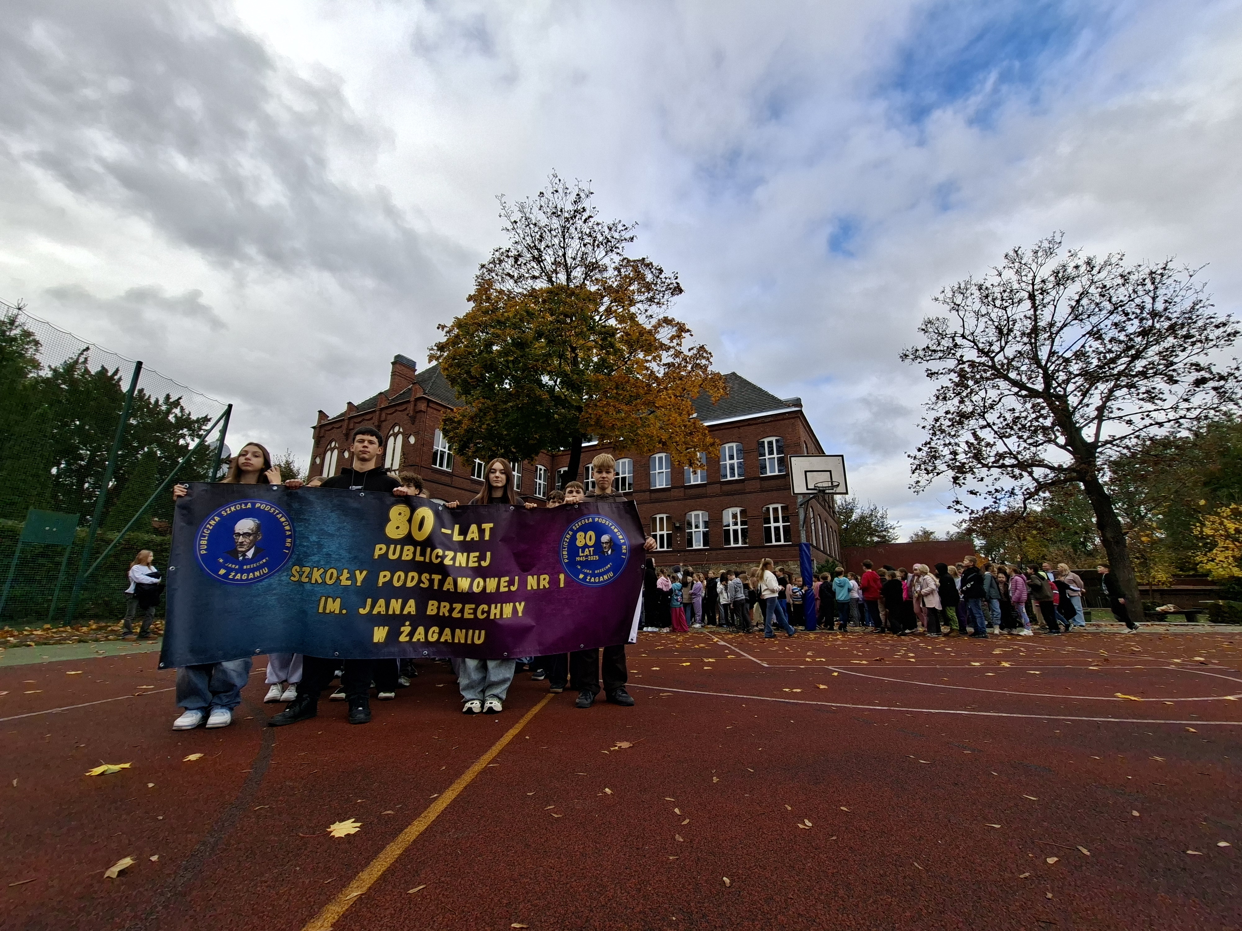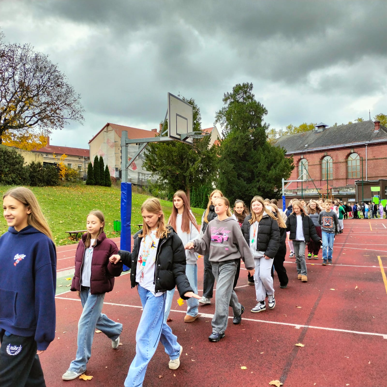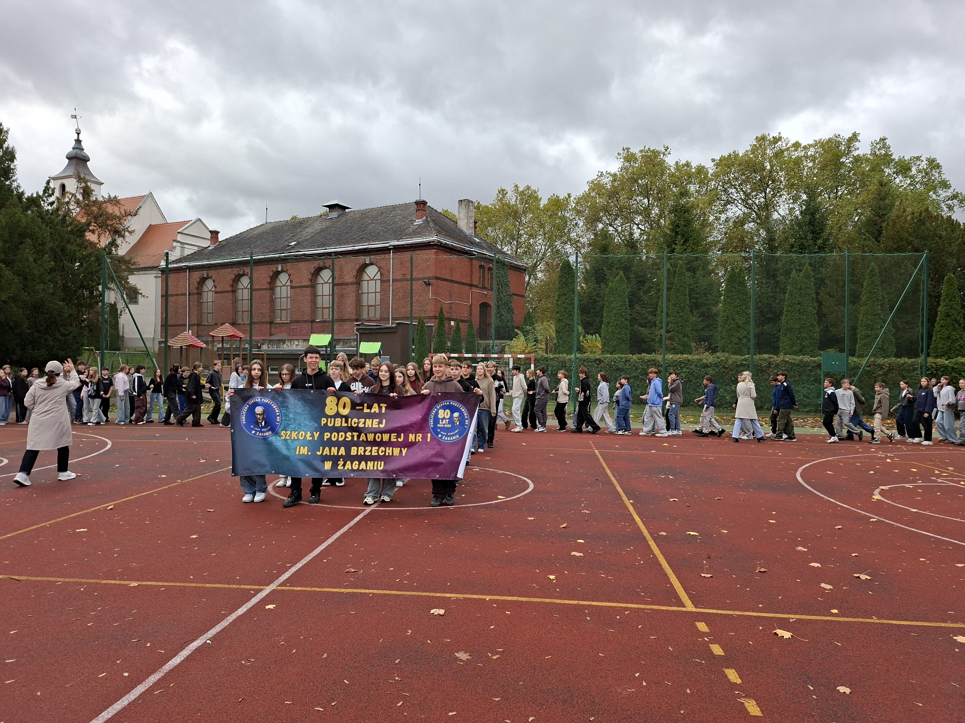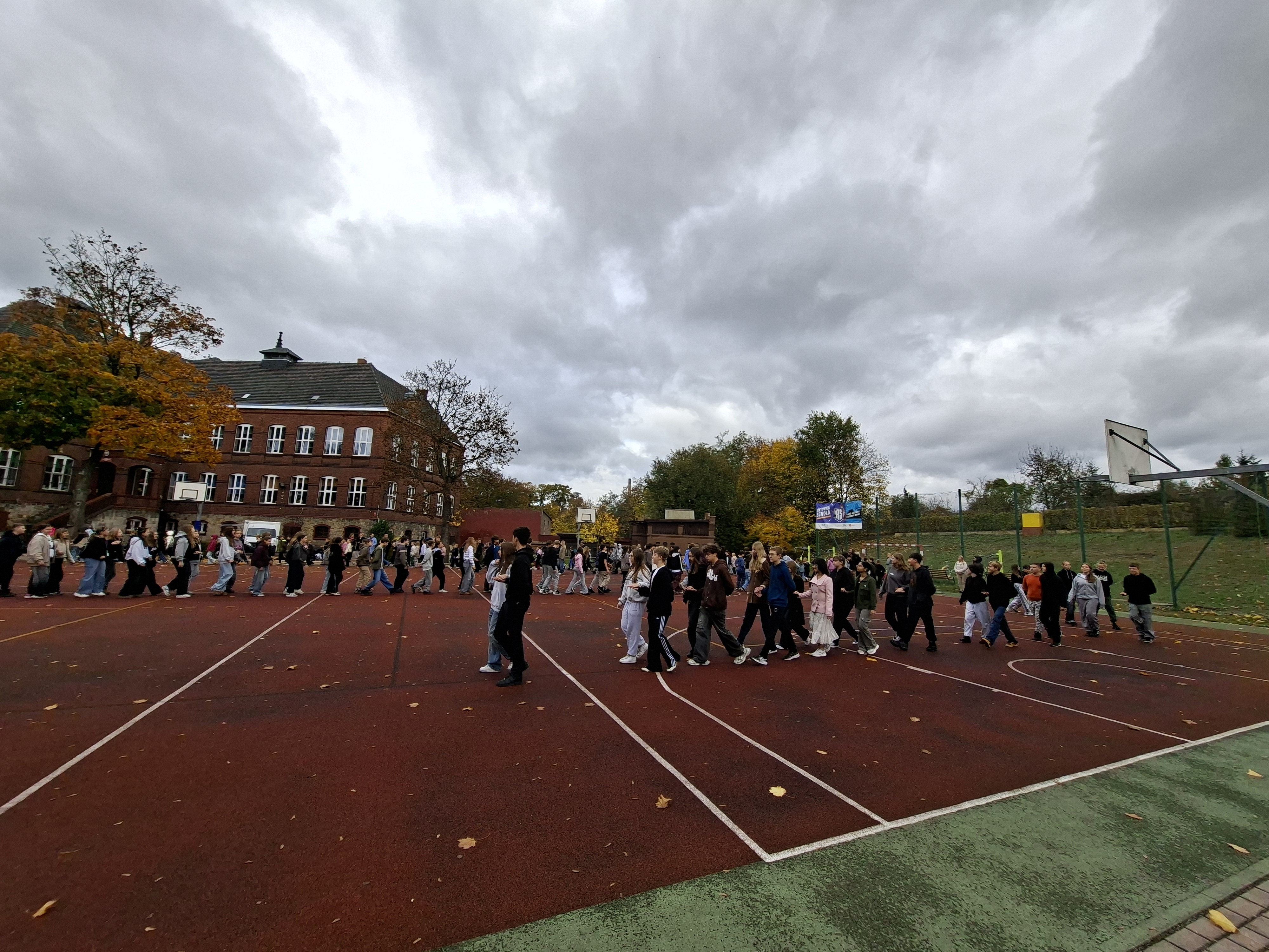 Z okazji naszego wyjątkowego jubileuszu cała społeczność szkolna wspólnie zatańczyła uroczystego Poloneza. Ten symboliczny taniec, pełen elegancji i tradycji, stał się pięknym wyrazem jedności oraz dumy z naszej szkoły i jej historii.